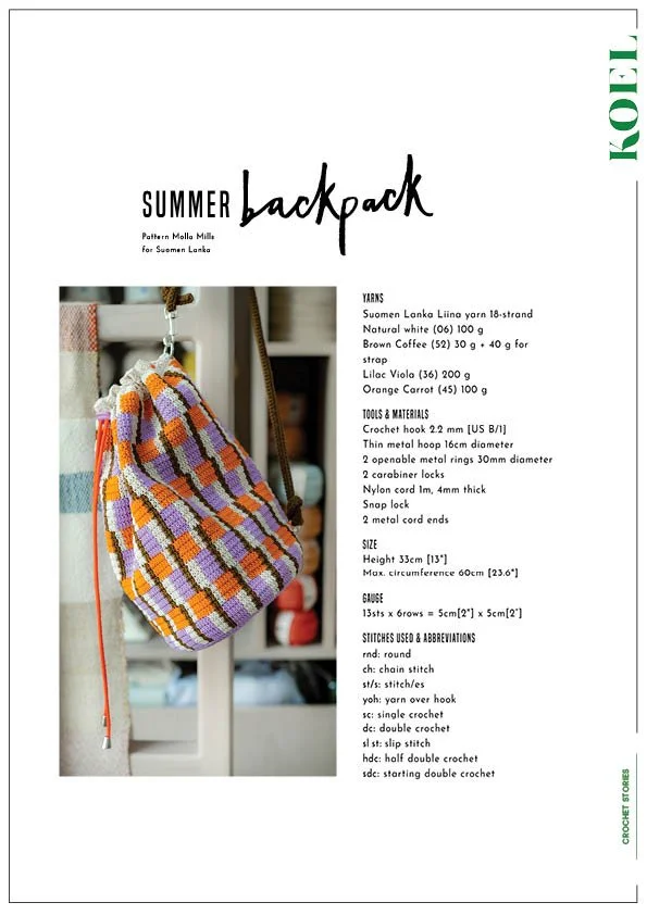 A summer backpack in bold crochet, designed by Molla Mills for Suomen Lanka, takes center stage in our latest story. Photographed in Irene’s new Dubai studio, this piece is all about fearless color, structure, and stepping beyond your safe palette. Think crochet is not for you? This might be the project that changes your mind.